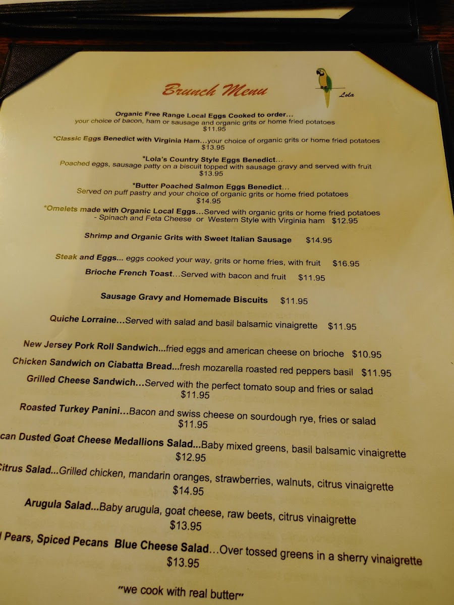 Served with organic grits or home fried potatoes and fruit.